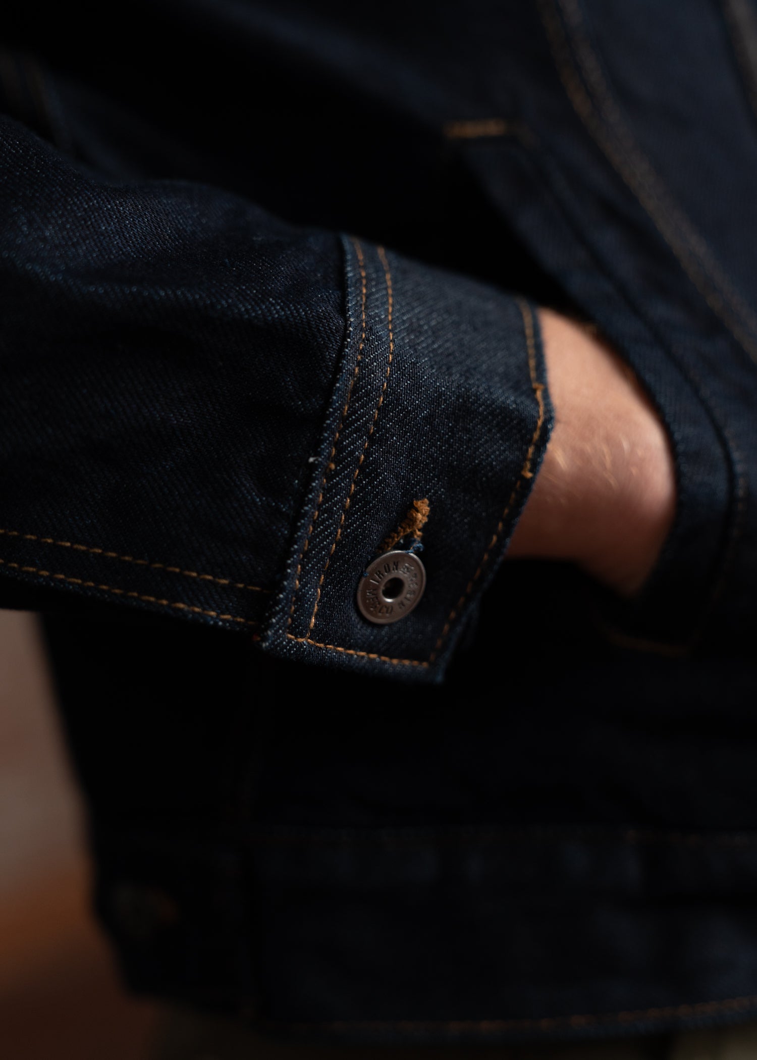 - Single custom I&R shank button throughout the jacket: front placket, pockets & cuffs