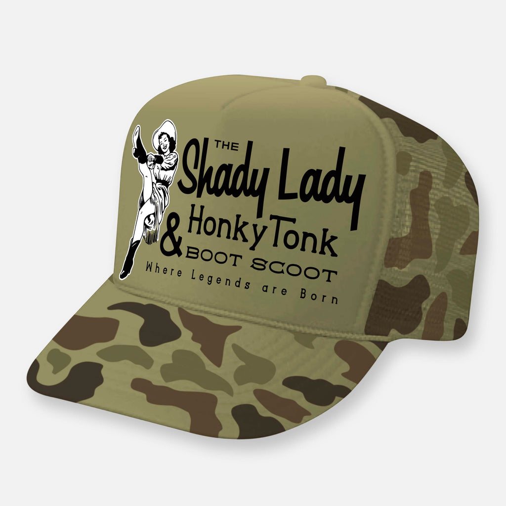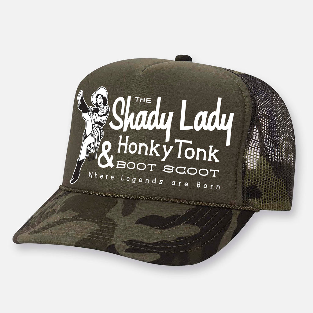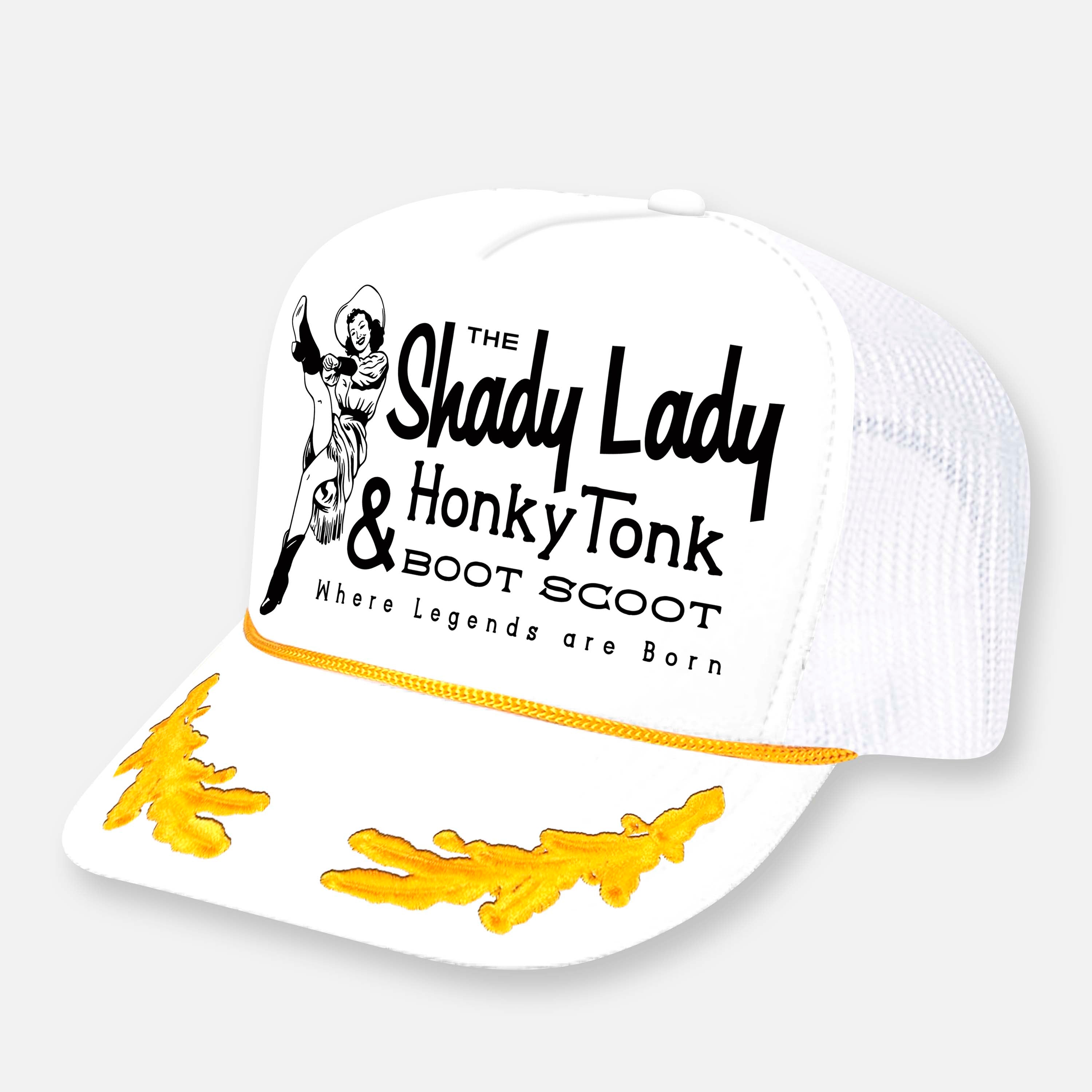 • The Shady Lady Honky Tonk logo printed on front foam panel