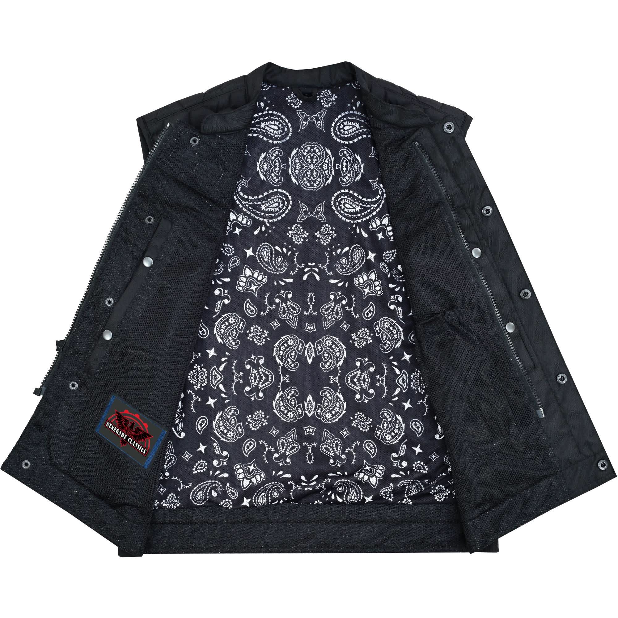 Mesh Rave Men's Black Mesh Textile Vest with Black Paisley Liner